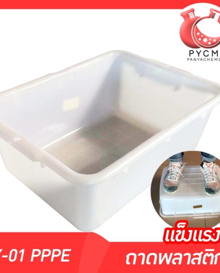 ถาดตะกร้าพลาสติกทึบสีขาวทรงสี่เหลี่ยม ตะกร้าเก็บของ เนื้อ PP PE แข็งแรงทนทาน Plastic tray